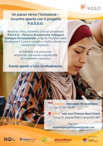 Sono partite nelle scorse settimane le prime lezioni del progetto P.A.S.S.O. – Percorsi di Autonomia, Sviluppo e Sostegno Occupazionale, promosso da ItaliaHello, Nosotras Onlus e ACISJF Firenze, con il sostegno della Fondazione Il Cuore si Scioglie.